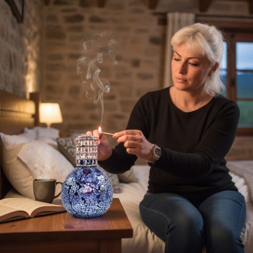 1. Llene la lámpara de la fragancia especial para lámparas catalíticas a 3/4 de su capacidad e introduzca la mecha sin encender dejándola empapar unos 15 minutos.
